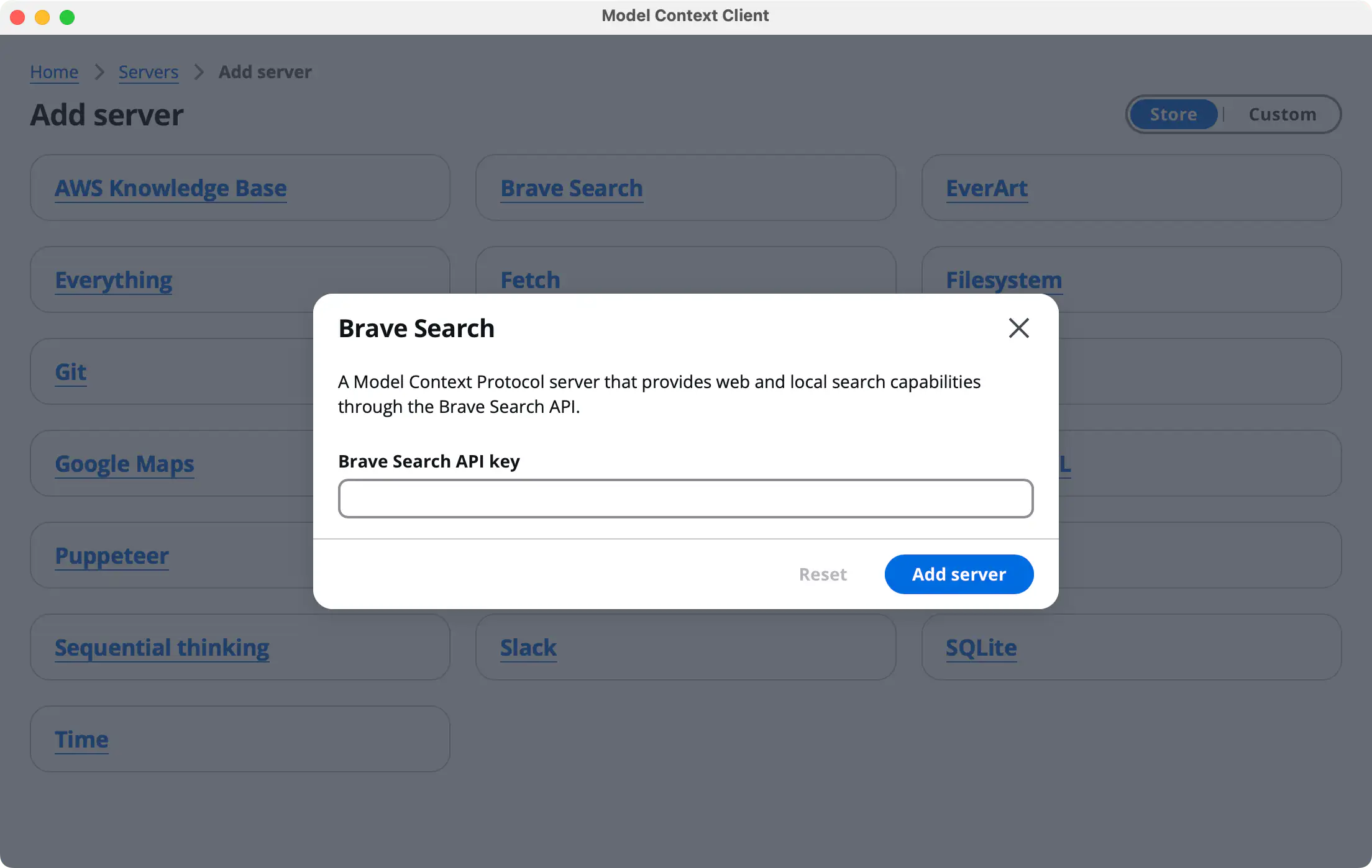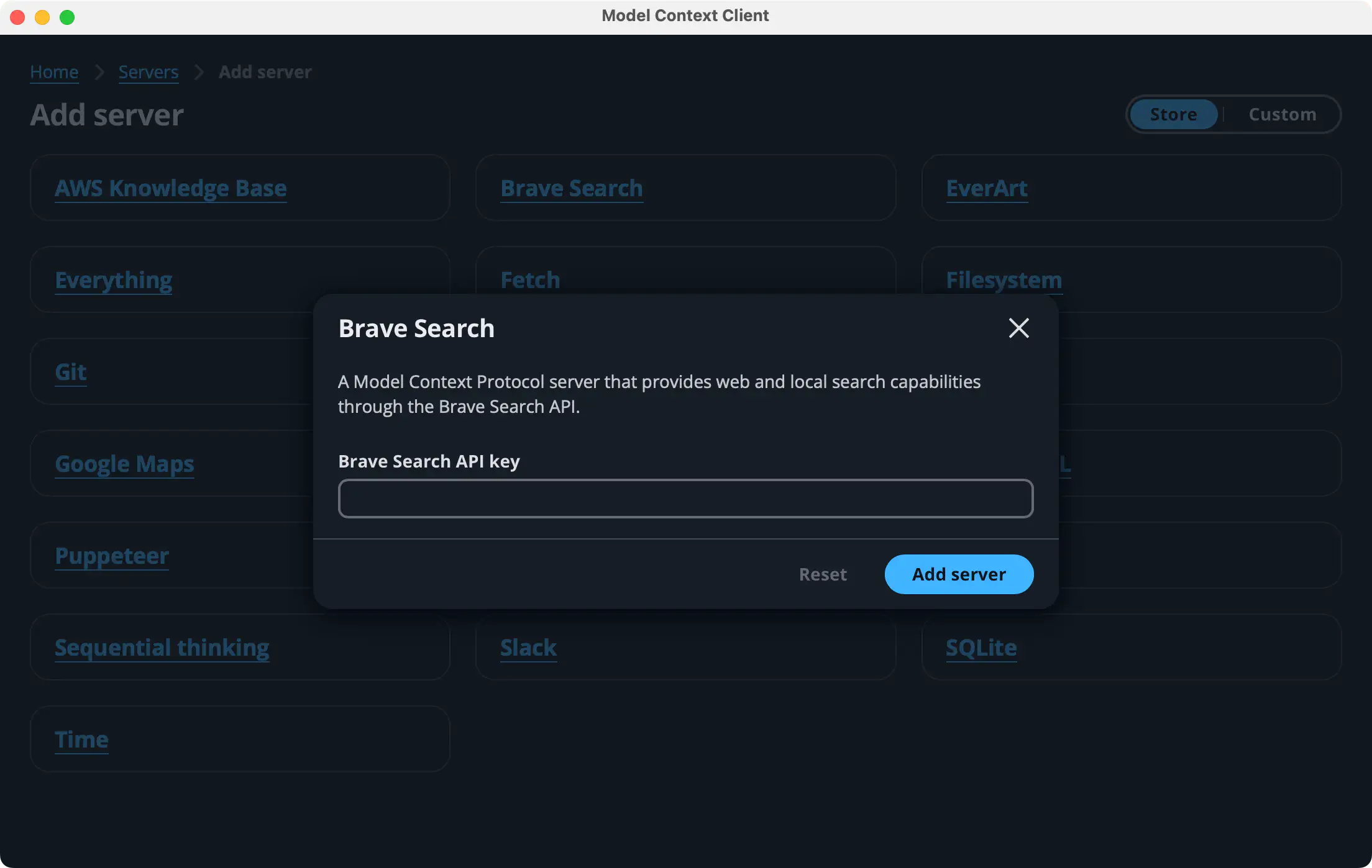 Connect to MCP servers with ease. Discover servers via the App Store or add your own custom configuration instantly.