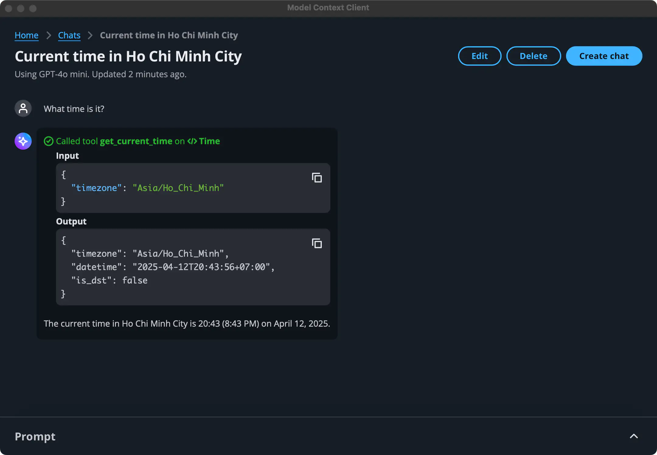 All MCP tools from connected MCP servers are integrated automatically. Just chat, the AI model will decide which MCP servers and tools to use.
