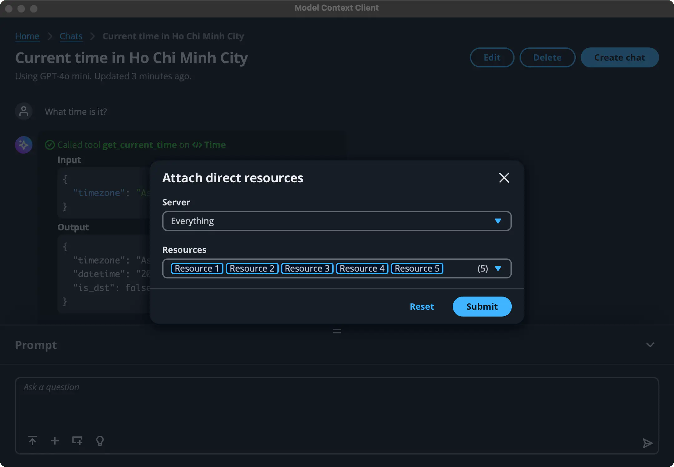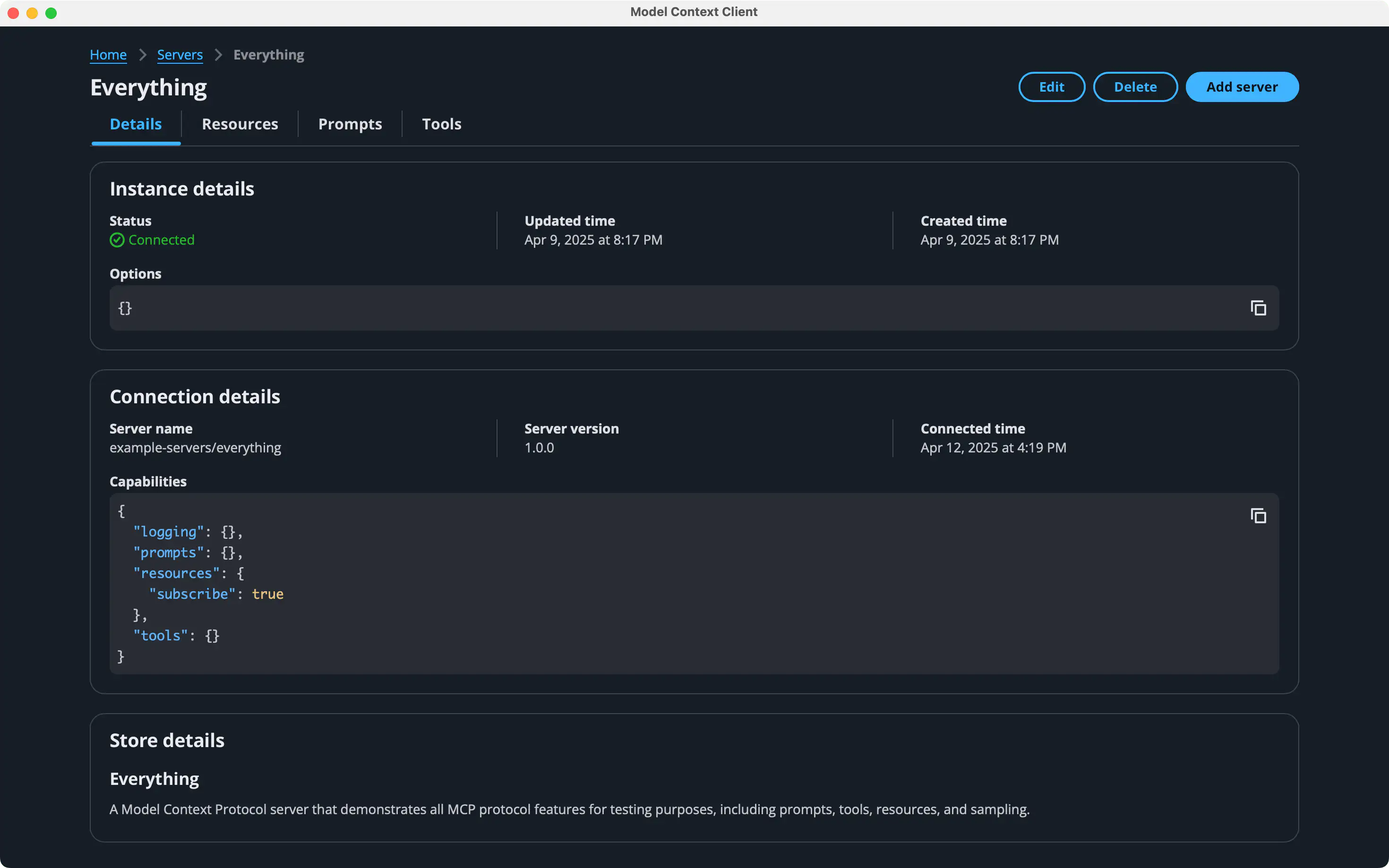 Our app is the only client offering this level of detailed exploration for MCP servers. Understand every aspect—overview, resources, prompts, and tools—like never before.