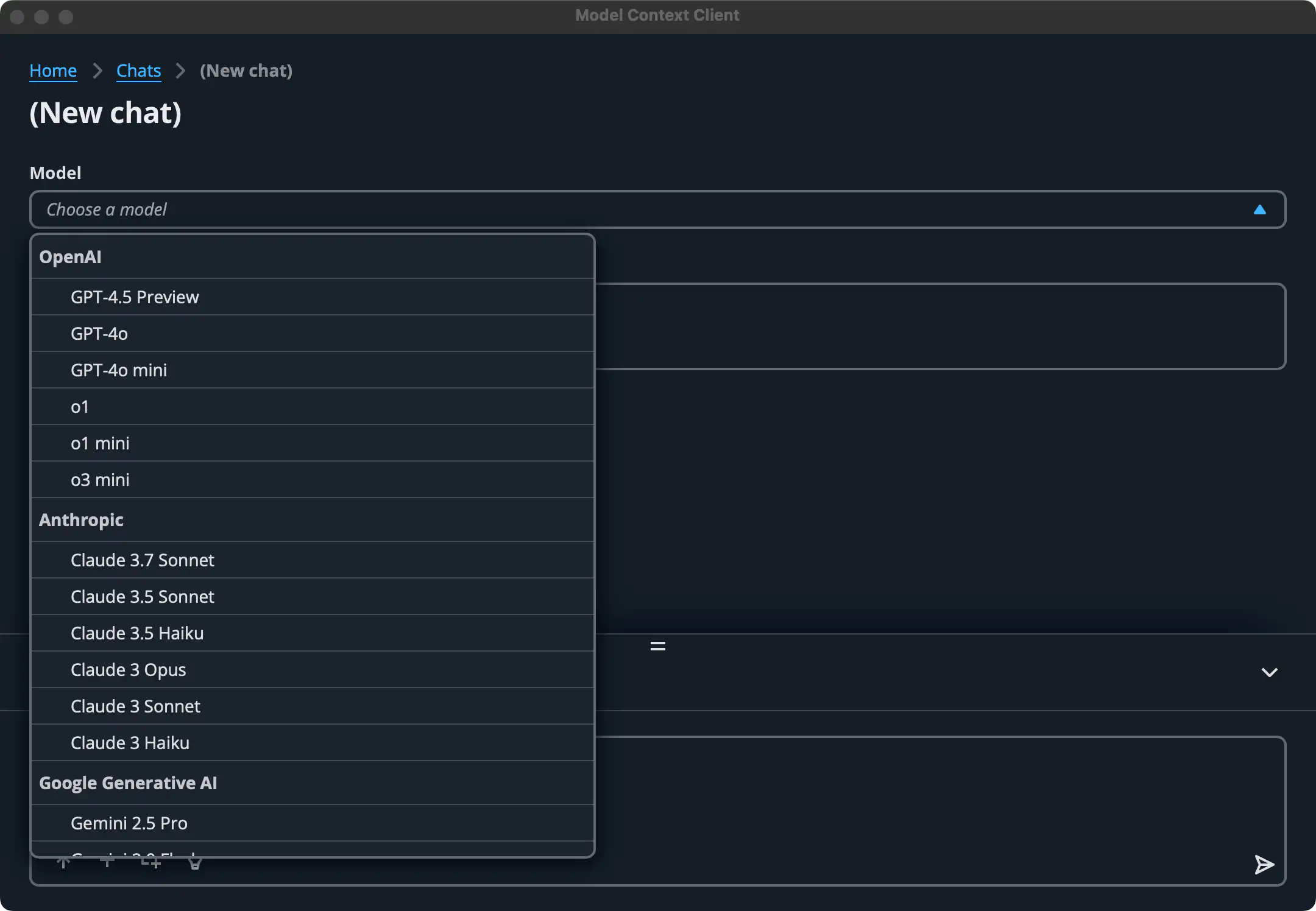Model Context Client is a powerful AI chat app designed for seamless MCP integration. Connect multiple AI models, easy-to-use UI, and unlock the full potential of MCP—all in one app.
